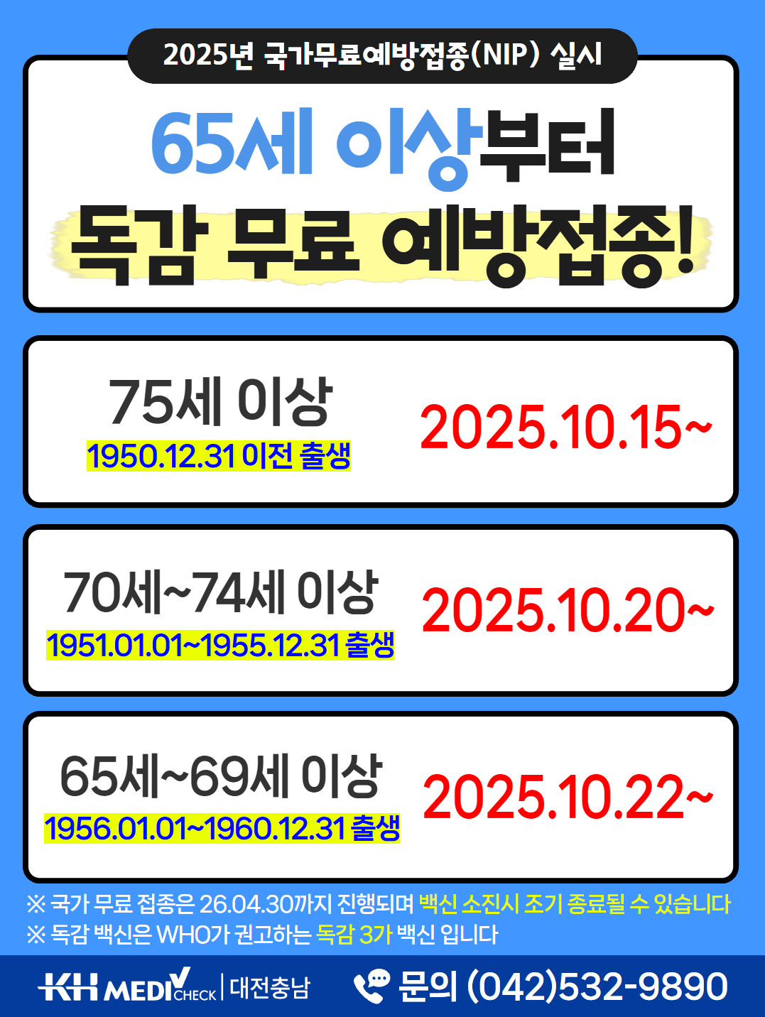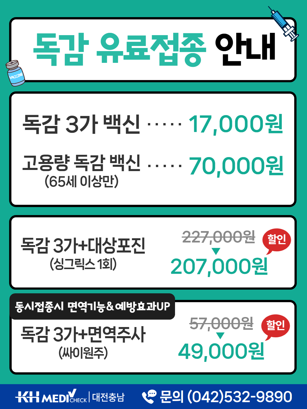 독감 무료(65세 이상) & 유료 접종 실시